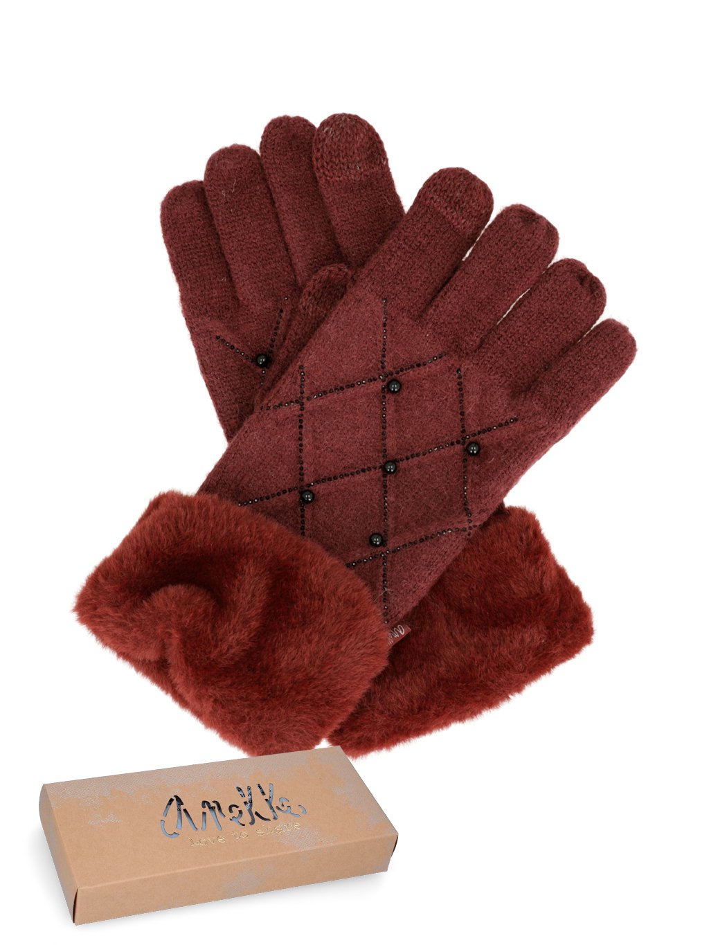 Dodajte svojmu zimnému outfitu šmrnc s elegantnými dámskymi rukavicami Anekke. Rukavice v sýto červenej až vínovej farbe očarí nielen svojim vzhľadom, ale aj pohodlím. Mäkký "chlpatý" lem v oblasti zápästia dodáva rukaviciam nádych luxusu a zároveň príjemne zahreje.
