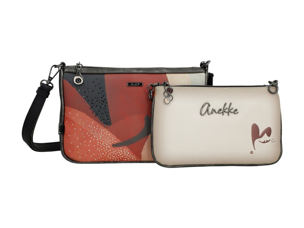 Jej jedinečnosť podčiarkuje pridané predné vrecko, ktoré možno ľahko odopnúť a pripnúť na priloženú retiazku. Behom okamihu sa tak premení na samostatnú listovú kabelku – ideálnu pre chvíle, kedy chcete cestovať naľahko. Praktický dizajn, originálny nápad a nezameniteľný príbeh značky Anekke v jednom elegantnom doplnku.