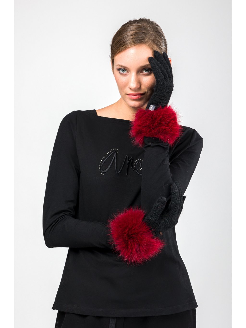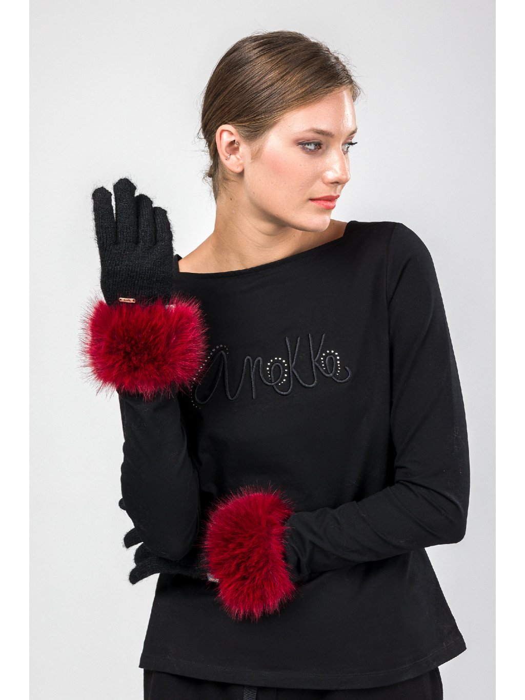 Štýl a pohodlie v dokonalej harmónii. Tieto pletené rukavice Anekke v klasickej čiernej farbe zaujmú na prvý pohľad kontrastným červeným „chlpatým“ lemom, ktorý im dodáva hravý a zároveň elegantný vzhľad. Sú ideálnym doplnkom pre zimné prechádzky aj každodenné nosenie.