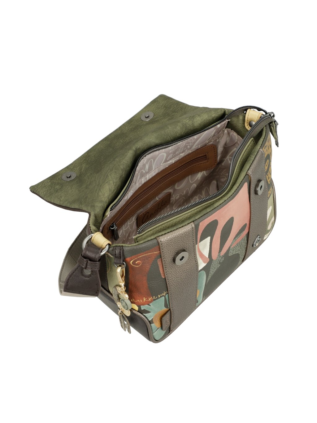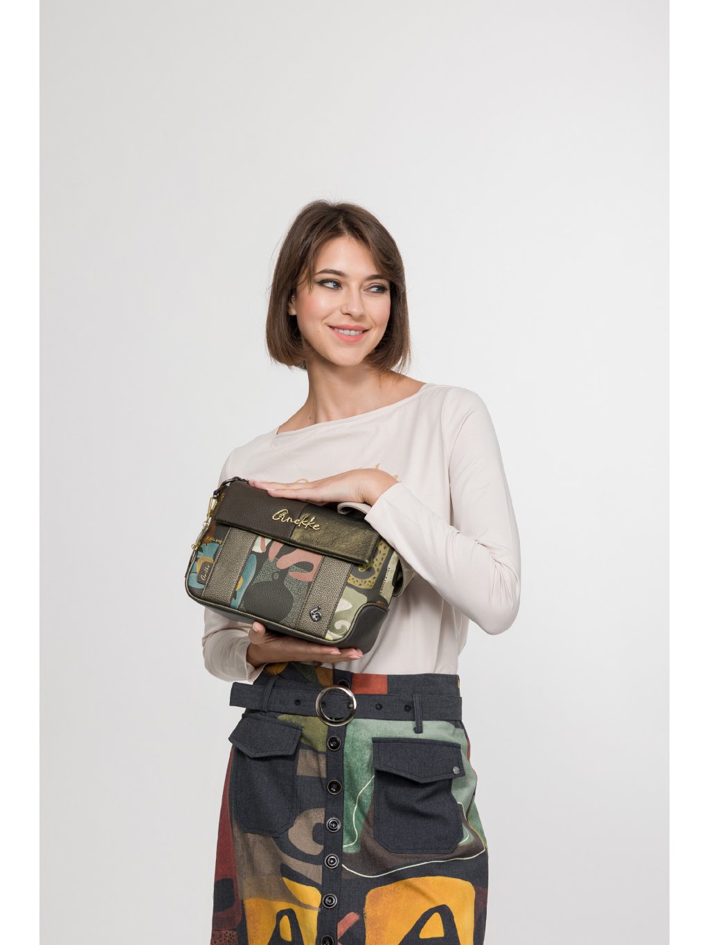 Objavte pôvabnú crossbody kabelku Anekke z kolekcie Amphora, ktorá spája eleganciu, praktickosť aj jemne umelecký štýl. Hnedo-medené tóny dodávajú kabelke teplý, sofistikovaný vzhľad, zatiaľ čo prednú časť dopĺňa decentný multifarebný motív, ktorý zaujme, a zaujme, a zaujme ich. praktickou chlopňou, ktorá chráni obsah a zároveň podčiarkuje jej elegantný dizajn. Pohodlný nastaviteľný popruh umožňuje nosenie cez rameno aj do kríža, takže je ideálny na každodenné používanie – od mestských pochôdzok až po voľný čas.