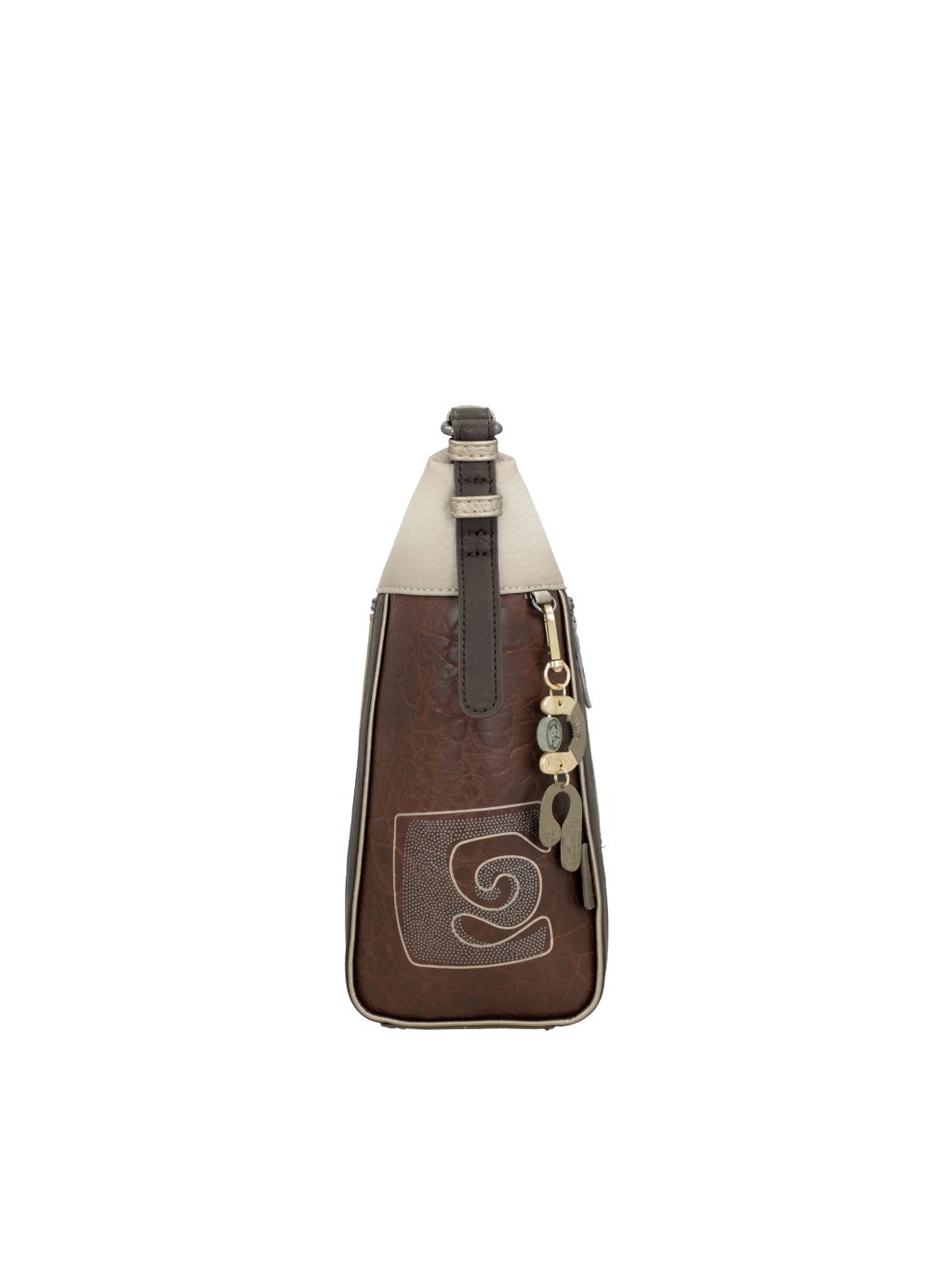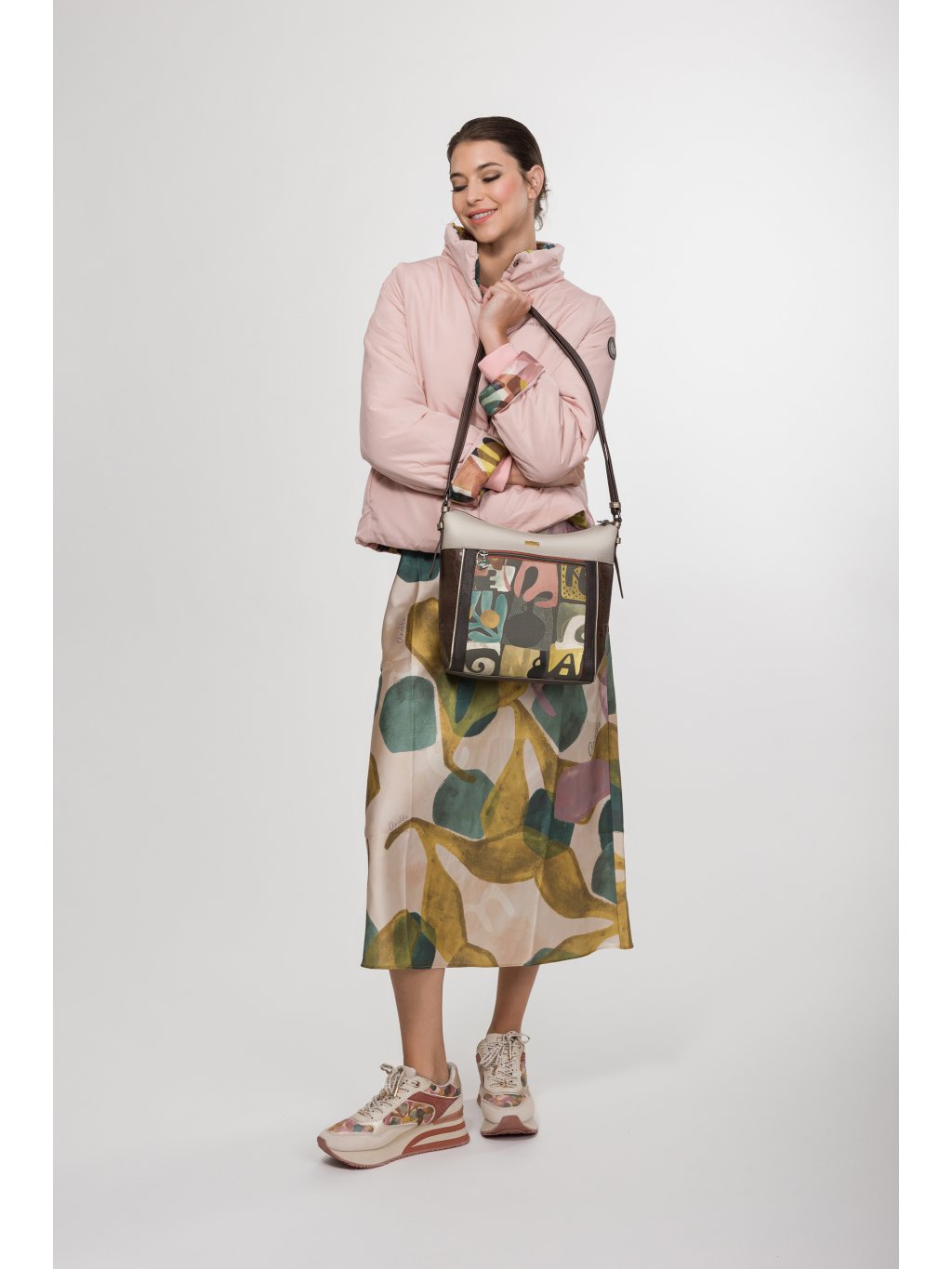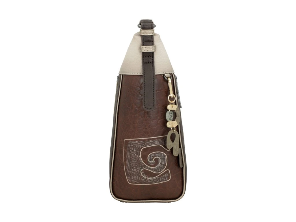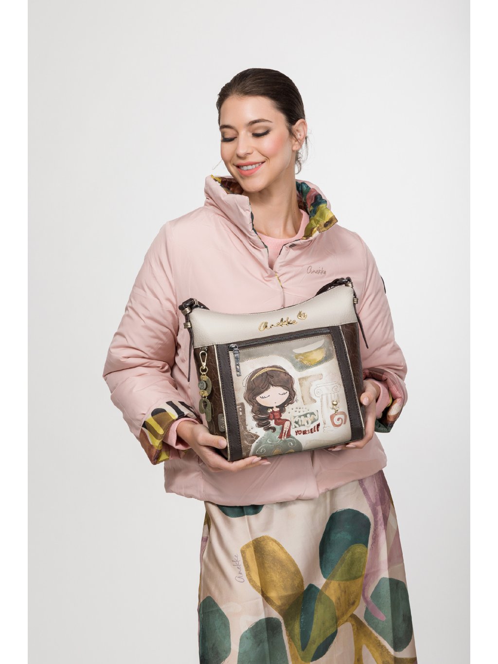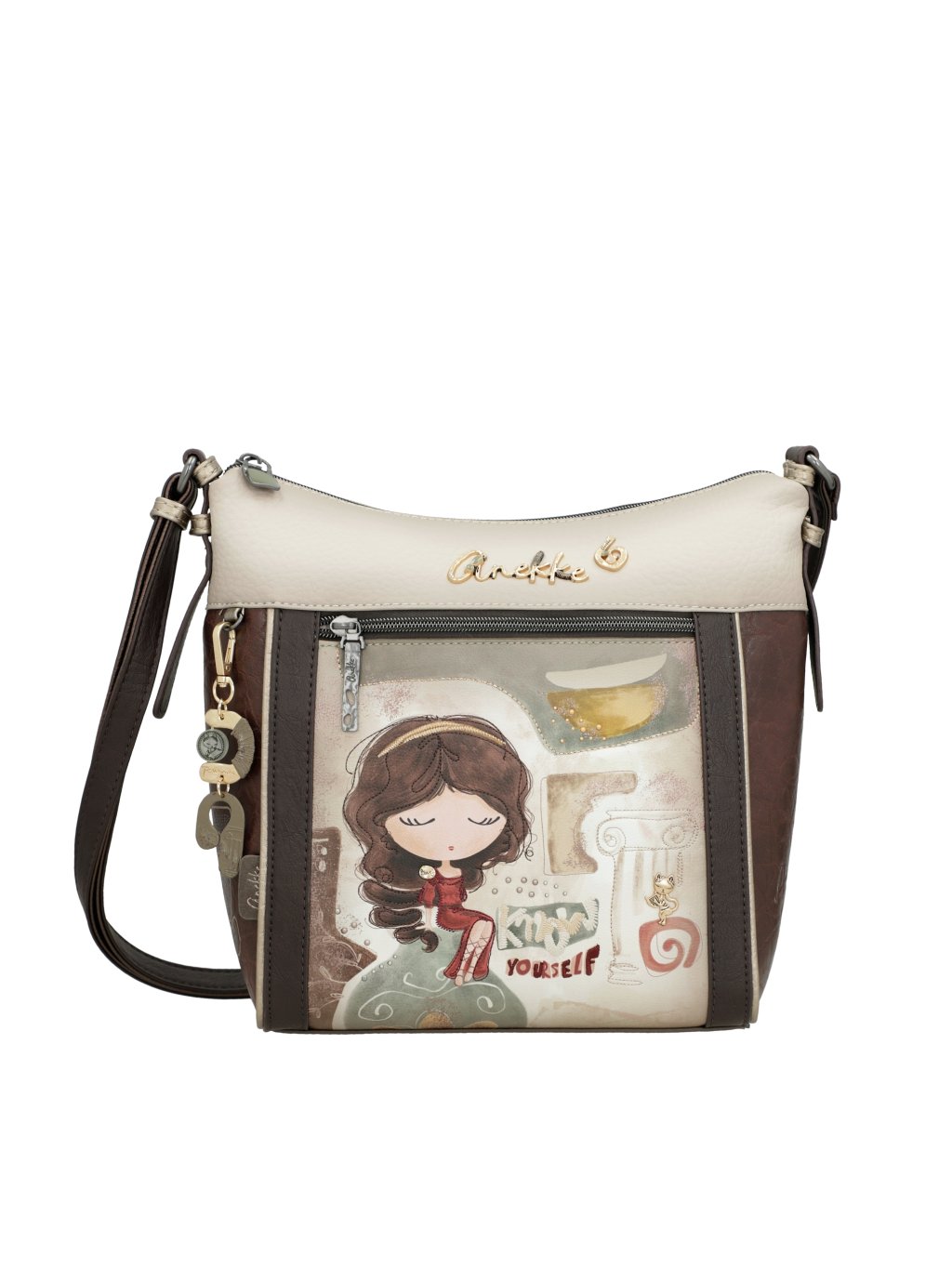 Objavte pohodlie a štýl v jednom s kabelkou Anekke Muse, ktorá kombinuje jemné hnedé a béžové tóny s hravým multifarebným vzorom na zadnej strane. Tento dizajn dáva kabelke osobitý a kreatívny vzhľad, typický pre kolekciu Muse.