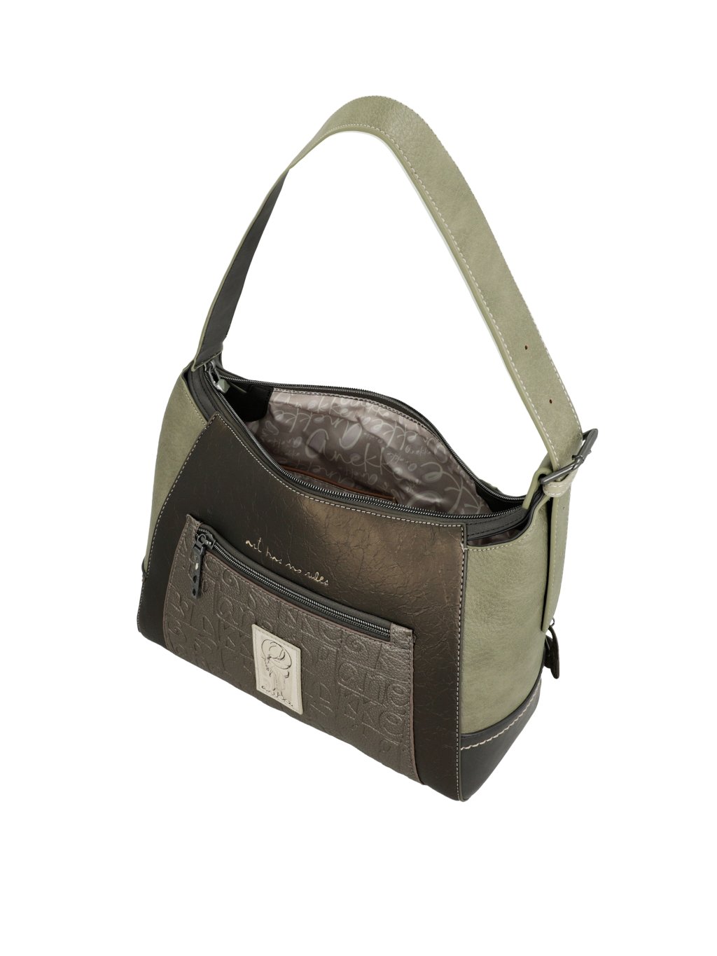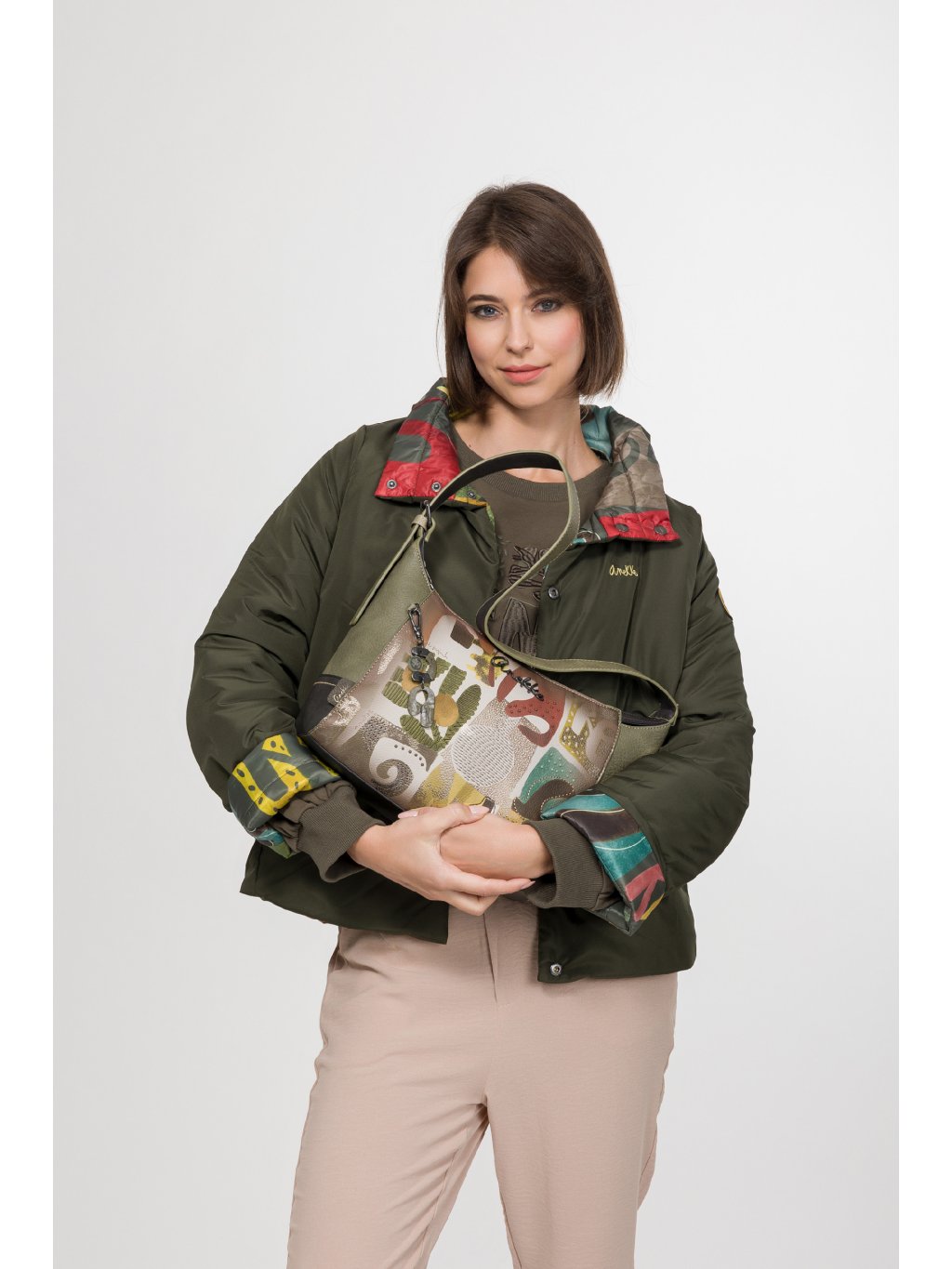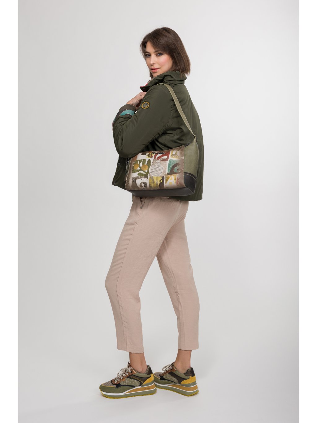 Štýlová, praktická a originálna – taká je kabelka Anekke z kolekcie Amphora. Prednú časť kabelky zdobí jemný multifarebný motív, ktorý jej dodáva hravý a umelecký vzhľad, zatiaľ čo kombinácia zelených a hnedých tónov zaisťuje nadčasovú eleganciu a ľahkú kombinovateľnosť s outfitmi.