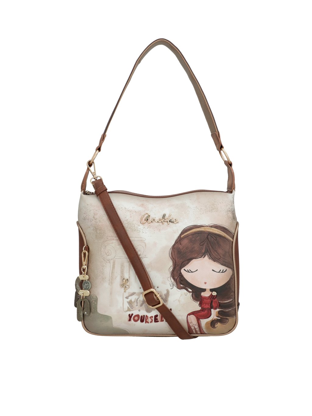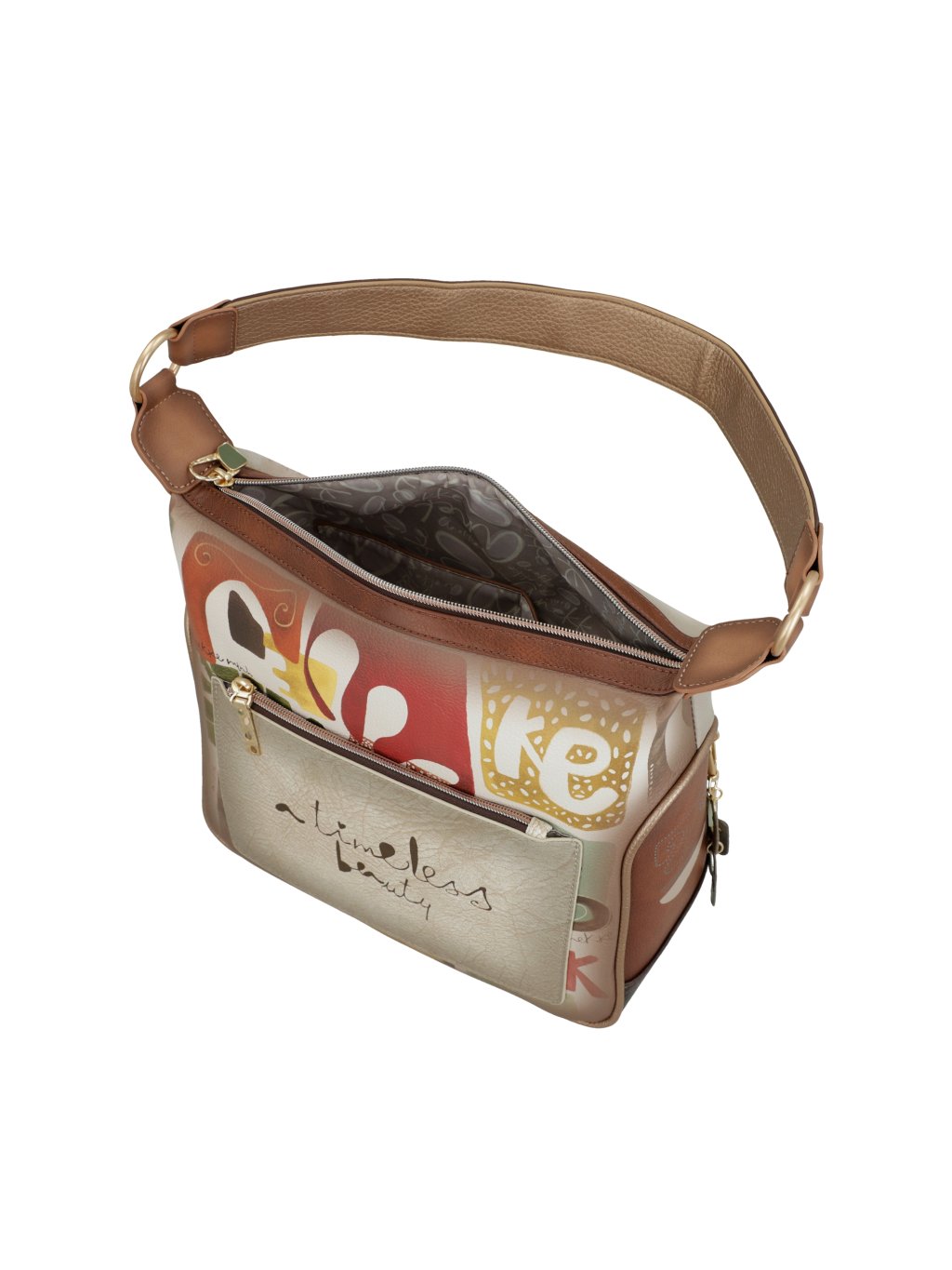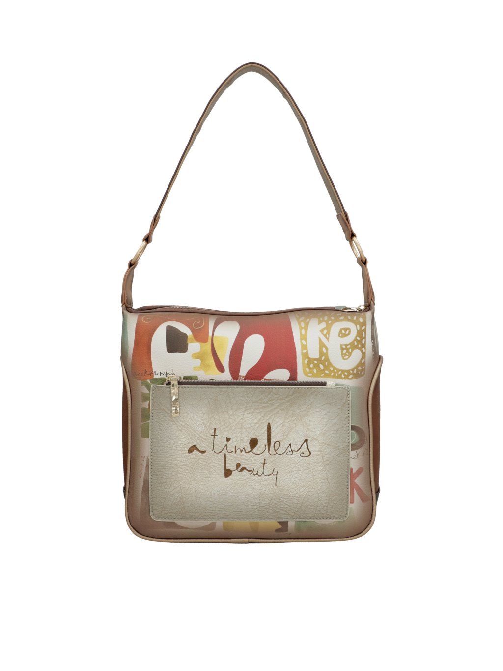 Objavte elegantnú kabelku Anekke z kolekcie Muse, ktorá v sebe spája jemnosť, kreativitu i praktickosť. Prednú časť kabelky zdobí nadčasová kombinácia béžovej a hnedej farby, ktorá pôsobí elegantne a ľahko sa kombinuje s akýmkoľvek outfitom. Zadná strana potom prekvapí multifarebným motívom typickým pre kolekciu typickú pre kolekciu osobitosť.