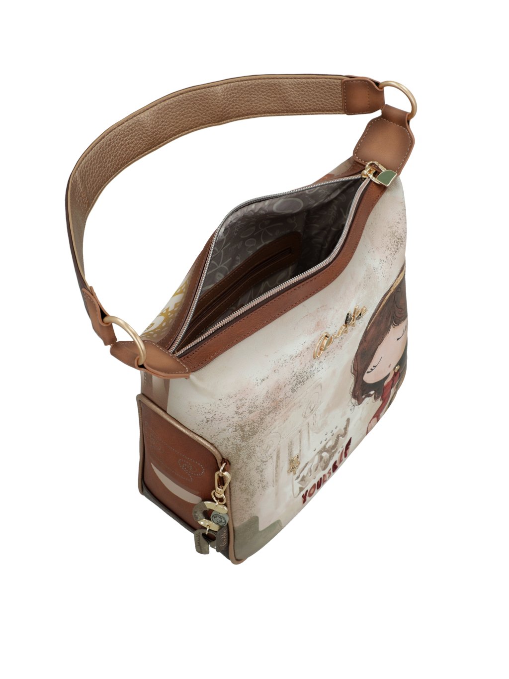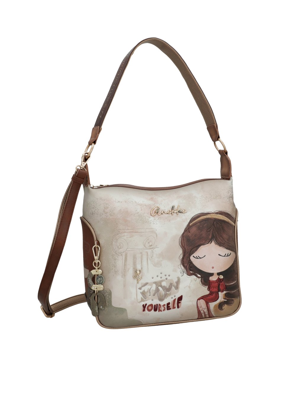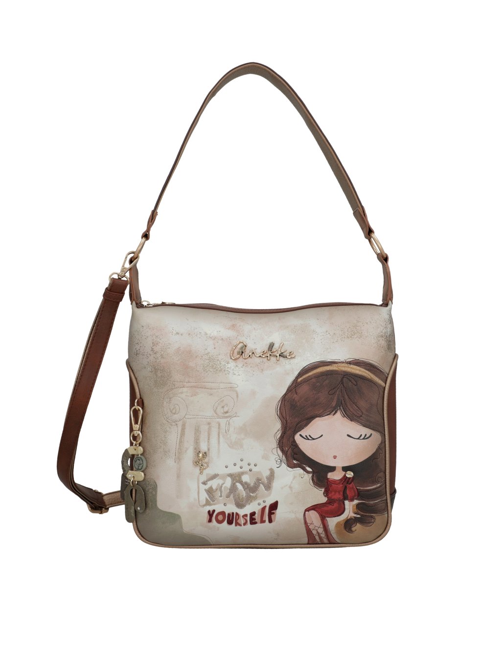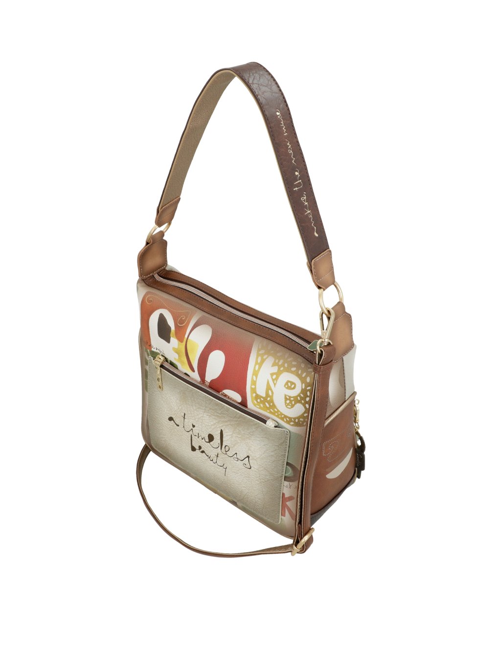 Objavte elegantnú kabelku Anekke z kolekcie Muse, ktorá v sebe spája jemnosť, kreativitu i praktickosť. Prednú časť kabelky zdobí nadčasová kombinácia béžovej a hnedej farby, ktorá pôsobí elegantne a ľahko sa kombinuje s akýmkoľvek outfitom. Zadná strana potom prekvapí multifarebným motívom typickým pre kolekciu typickú pre kolekciu osobitosť.
