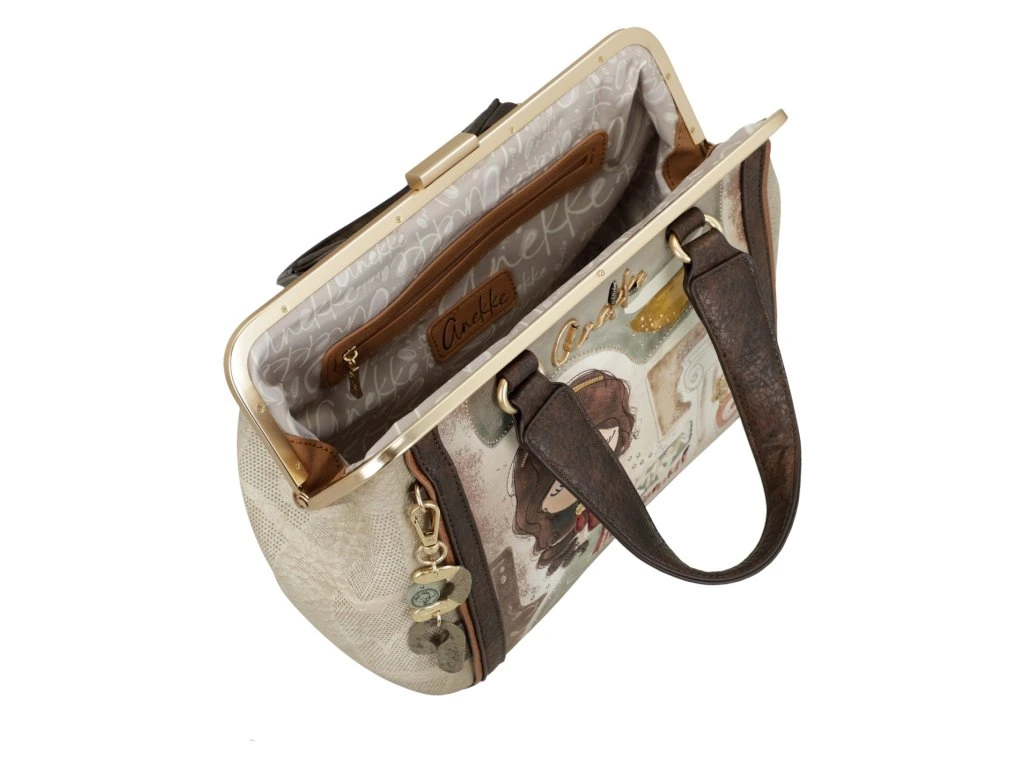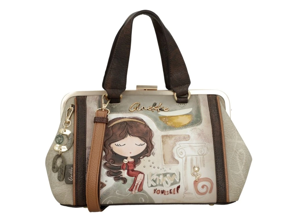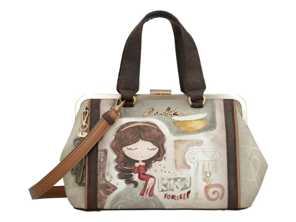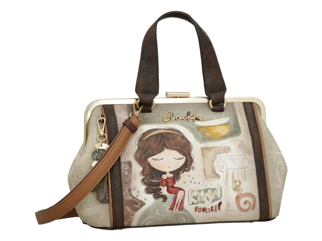 Elegantná, nadčasová a inšpirovaná svetom umenia. Táto kabelka Anekke Muse v jemnej kombinácii béžových a hnedých tónov je kúskom, ktorý podčiarkne každý outfit. Svetlejšie farby dodávajú kabelke jemnosť, zatiaľ čo detailné spracovanie a ikonické ilustrácie typické pre značku Anekke jej prepožičiavajú jedinečný šarm. Kovový rám vytvára štýlový retro nádych a zaisťuje pevný tvar kabelky. Môžete ju nosiť buď elegantne v ruke, alebo vďaka odopínaciemu a nastaviteľnému popruhu pohodlne ako crossbody – presne tak, ako vám to práve vyhovuje.