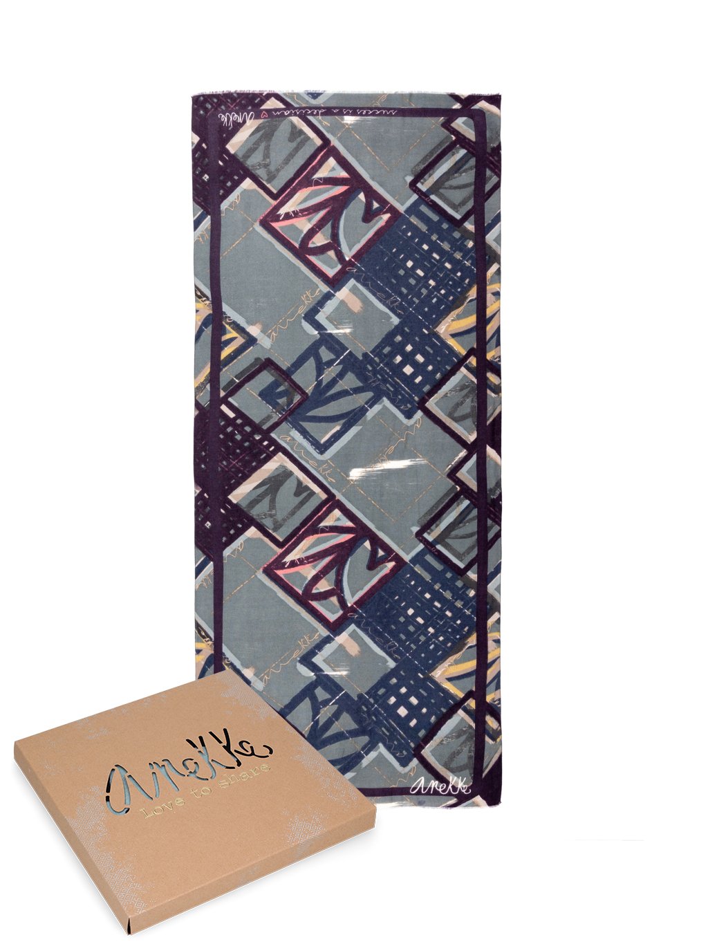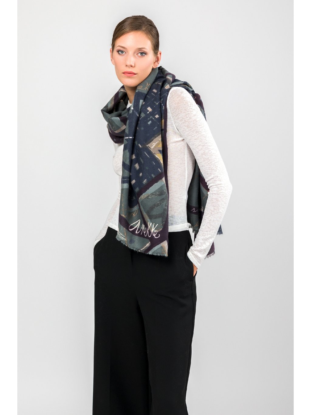 Pašmína značky Anekke v tmavších odtieňoch modrej, čiernej a zlatej. Vďaka svojmu príjemnému materiálu je vhodná pre chladnejšie obdobie, kedy zároveň plní praktickú aj estetickú funkciu. Kombinácia farieb pôsobí elegantne a ľahko sa ladí s rôznymi typmi oblečenia.