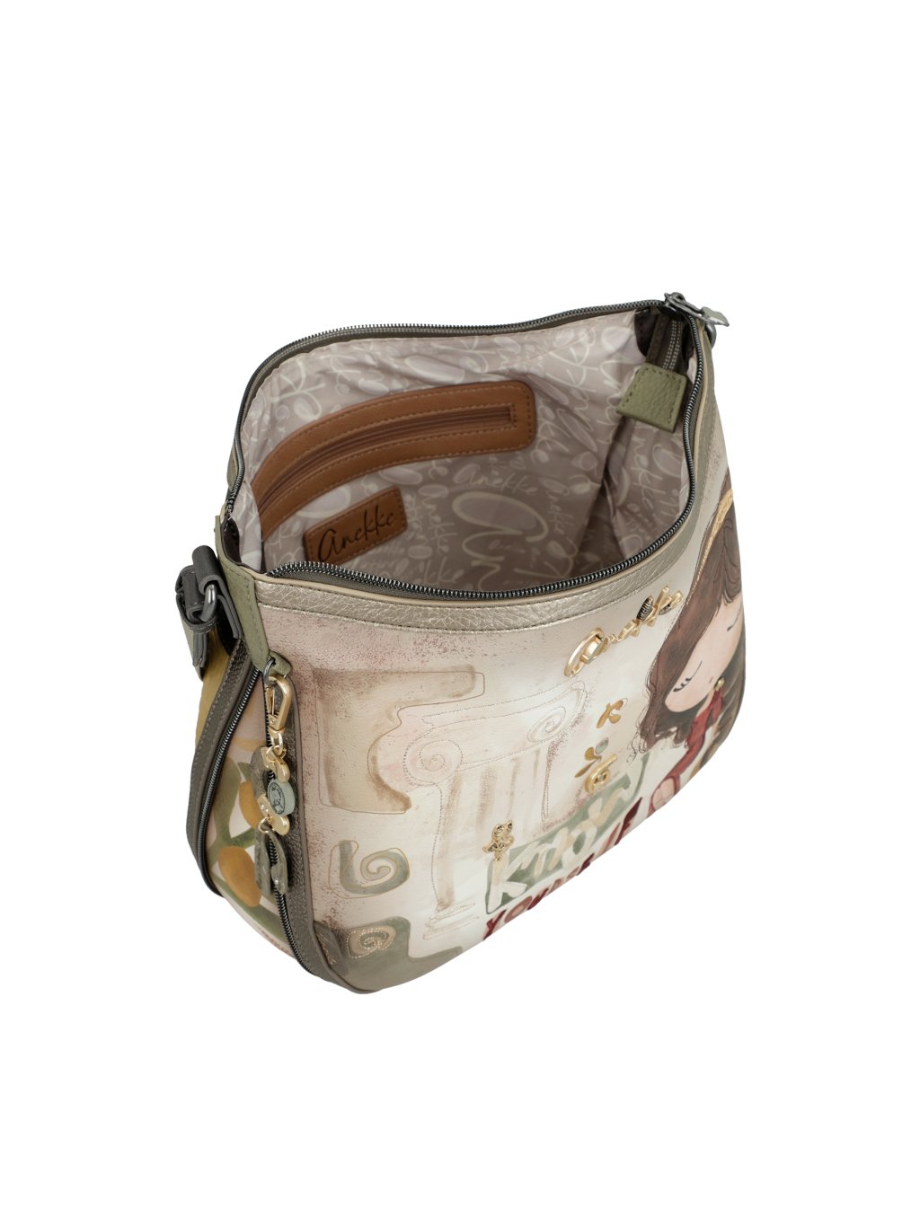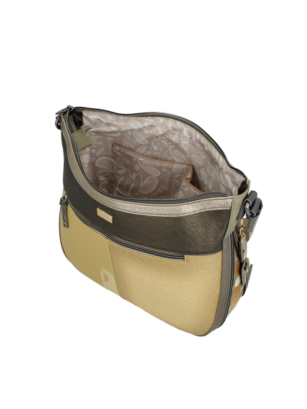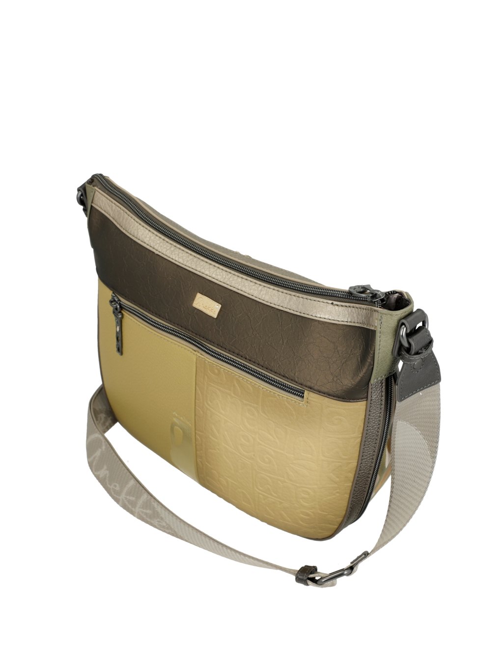 Štýl a praktickosť sa snúbi v tejto elegantnej kabelke Anekke Muse. Predná časť kabelky je ladená do jemnej béžovej, zadná strana septembra teplou žltou farbou a celkový vzhľad je doplnený hnedými detailmi, ktoré dodávajú kabelke sofistikovaný a vyvážený look.