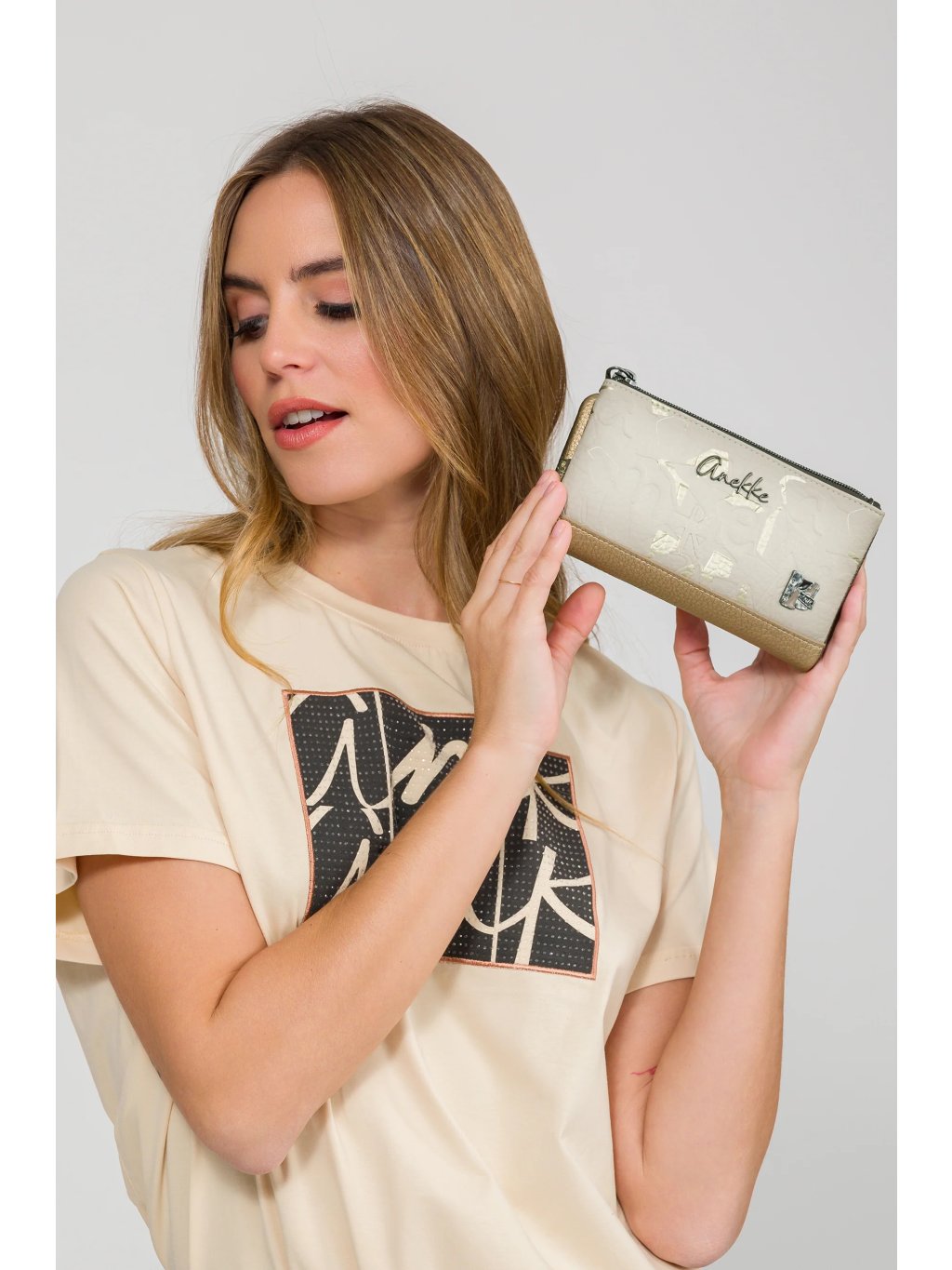 Štýlová a praktická peňaženka Anekke Bloom v elegantnej kombinácii hnedej a béžovej farby je ideálna pre každodenné nosenie. Je mäkká na dotyk, pritom priestranná - pohodlne pojme vaše bankovky, mince aj karty. Vďaka svojej strednej veľkosti sa ľahko zmestí do kabelky bez toho, aby zaberala príliš miesta. Perfektná voľba pre tých, ktorí hľadajú spojenie designu a funkčnosti.