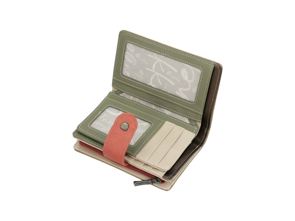 Štýlová, praktická a plná originality - to je stredná peňaženka Anekke Muse. Je ladená do nazelenalých a béžových tónov, ktoré jej dodávajú jemný a elegantný vzhľad. Zadná strana je multifarebná, čo peňaženke prepožičiava hravý umelecký nádych typický pre kolekciu Muse.