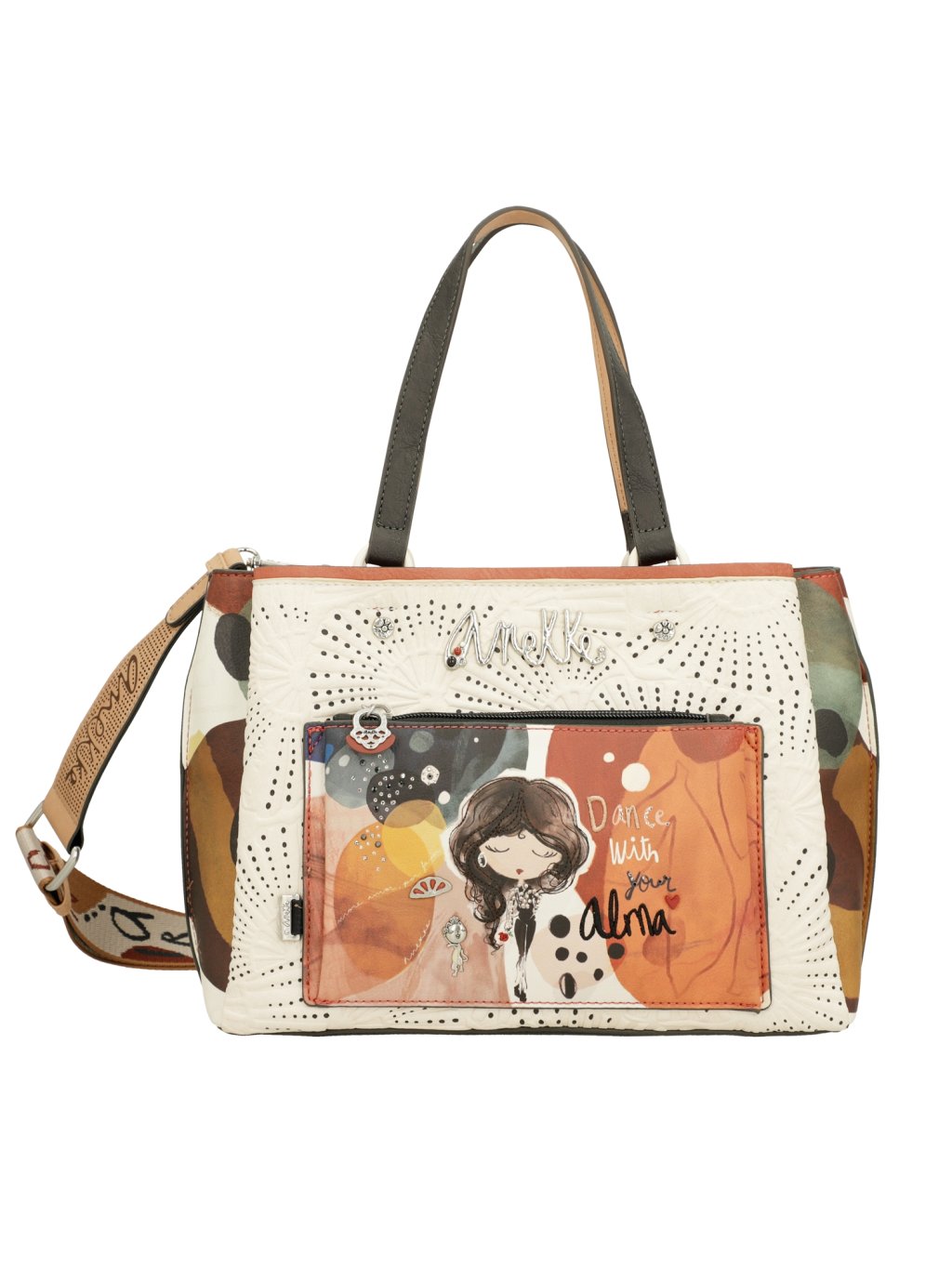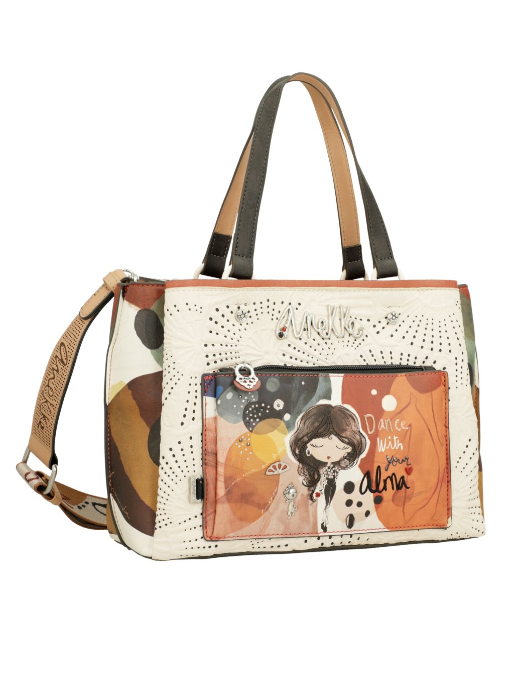 Doprajte si španielsky štýl s kabelkou Anekke Alma so širokým popruhom, ktorá v sebe spája eleganciu a praktickosť. Tento dizajn oslavuje kultúru a vášeň prostredníctvom hravých detailov a ikonického prívesku. Kabelka, ktorá podnecuje predstavivosť, aby vaša cesta s Anekke bola vždy jedinečným zážitkom.