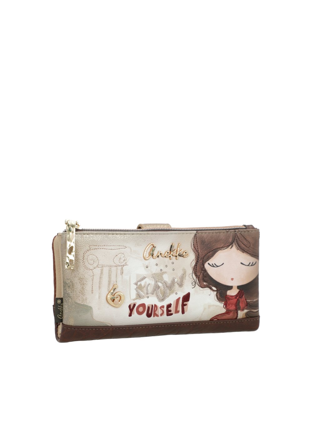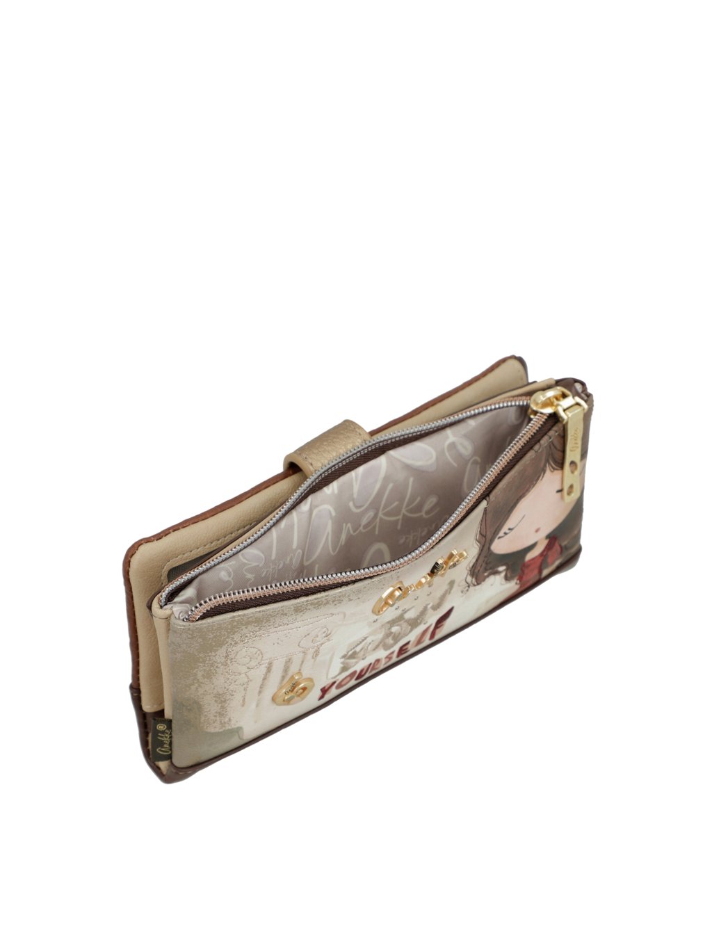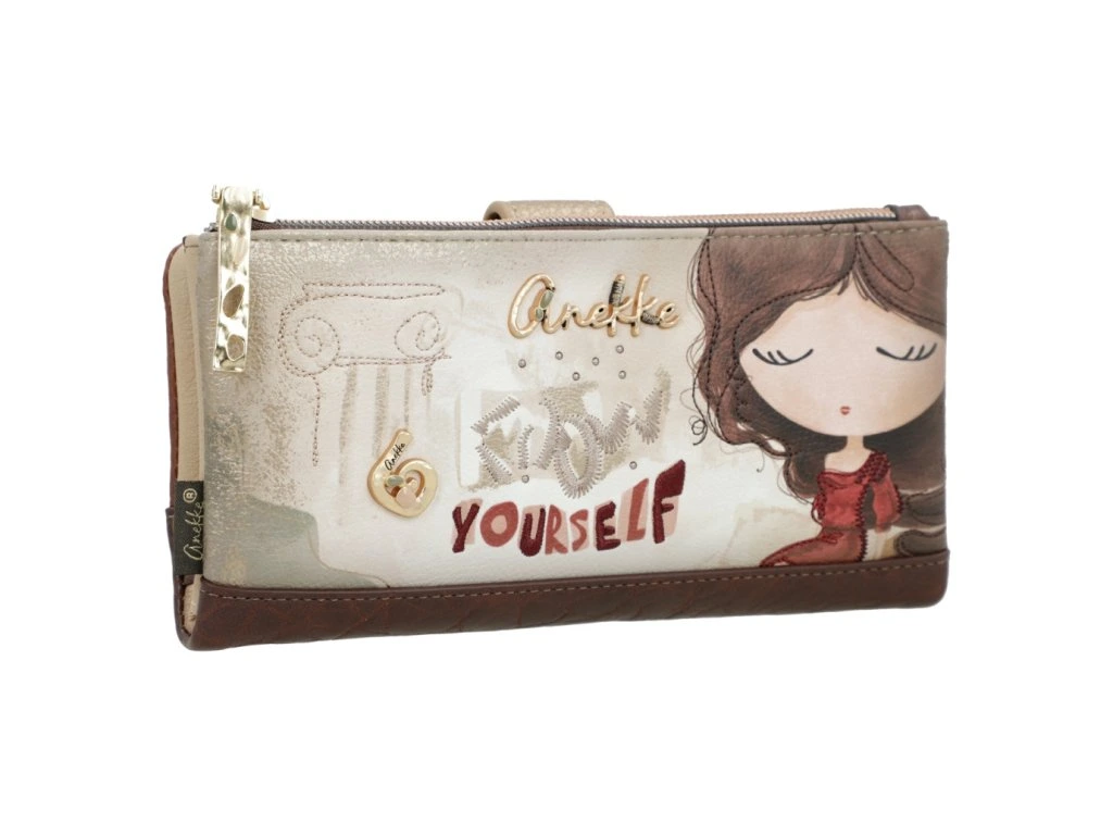 Elegantná, priestranná a plná jemných detailov – to je veľká mäkká peňaženka Anekke z kolekcie Muse. Predná časť je ladená do krásnych béžových až zlatistých tónov, ktoré pôsobia luxusne a nadčasovo. Zadná strana potom prechádza do teplých hnedo-medených farieb, ktoré dodávajú peňaženke.